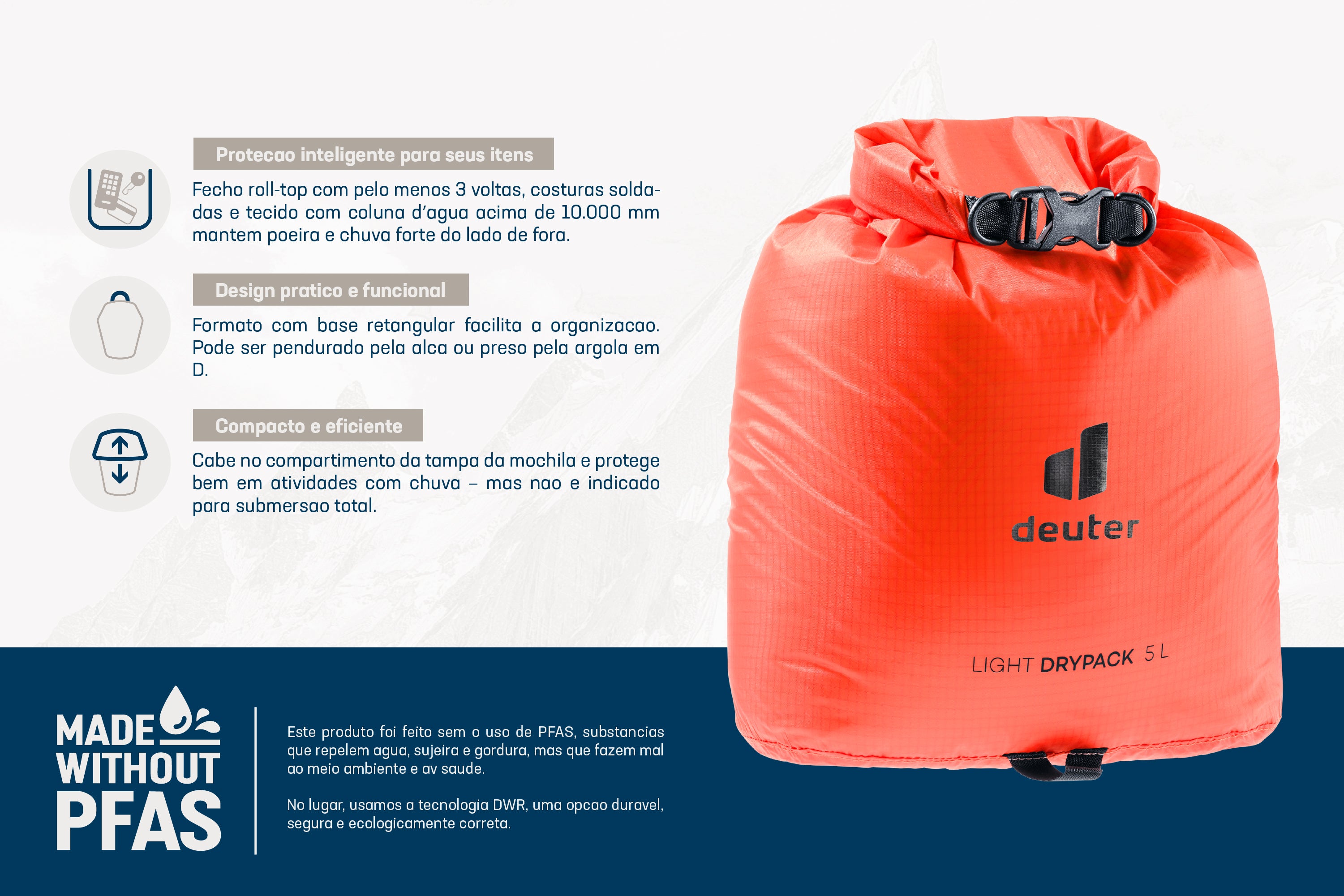 Lightweight, reliable protection for your adventures – Deuter Light Drypack 20: waterproof security for what matters most.