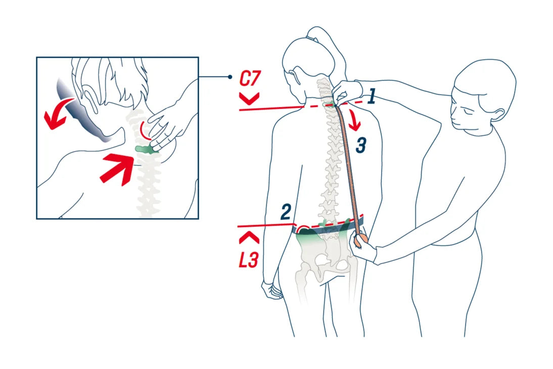 Use um cinto para ajudar na medição. Posicione o cinto sobre o osso do quadril. Este fica na mesma altura da vértebra lombar L3.Uma fita métrica pode então ser posicionada na vértebra C7, e a medida pode ser feita entre ela e o topo do cinto ou do osso do quadril.Você pode medir o comprimento das suas costas seguindo estas instruções .Depois de determinar o comprimento das suas costas, você pode usar nossa tabela de tamanhos para ver qual tamanho de mochila de trekking é ideal para você.